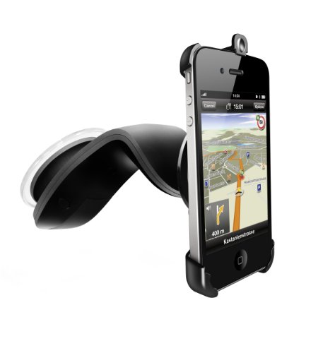 Recently top-rated by Macworld.com, and a European bestseller, the Navigon iPhone 4 4S Design Car Kit is a must-have accessory when creating the ultimate mobile navigation experience. With a short robust mount and an industrial strength suction pad, few other iPhone car mounts in the market can measure up to the stability of this this mount. With its minimalistic design, the iPhone will take center-stage and you will not be distracted while driving.The Navigon iPhone Car Kit consists of a custom-designed iPhone 4/4S mount device that can be used in portrait and landscape mode, a designer suction pad holder, and a new improved 12-24V car charger for iPhone 4, featuring a 4.9 ft Apple certified USB charge/sync cable.