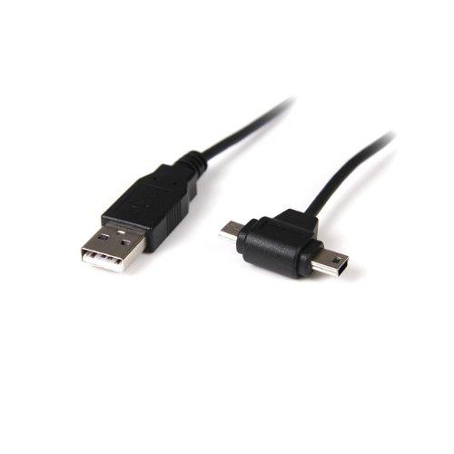 The USBHAUBMB3 3-foot USB to Micro USB and Mini USB Combo Cable provides 1 USB "A" Male connector, 1 Micro USB "B" connector and 1 Mini USB "B" connector, letting you connect mobile devices (e.g. BlackBerry and Android-based cellular phones, and other portable devices such as phones, GPS and digital cameras) that use a Micro or Mini USB connector to a USB-capable computer for charging, data synchronization and file transfers. This 2-in-1 Multifunction USB to Mini/Micro USB cable (USB Combo Cable) is the perfect solution for connecting your Mini USB or Micro USB device while avoiding the hassle of swapping in and out between 2 separate cables. The USB combo cable is backed by StarTech.com's Lifetime Warranty to ensure dependable, long-lasting connections between Mini/Micro USB and standard USB devices.